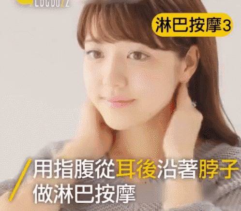 3、在脸部往上推拉以后再用指腹从耳后沿着脖子做淋巴的循环按摩,其实是和第二部连接起来的!这样整个一套下来效果会更加的明显哦!